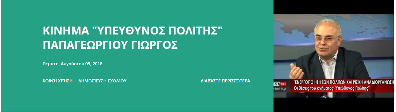 | Δείτε στο youtube ypeuthinospolitis ποιές είναι οι θέσεις μας.. καλή σας ... διαβάστε περισσότερα | ||