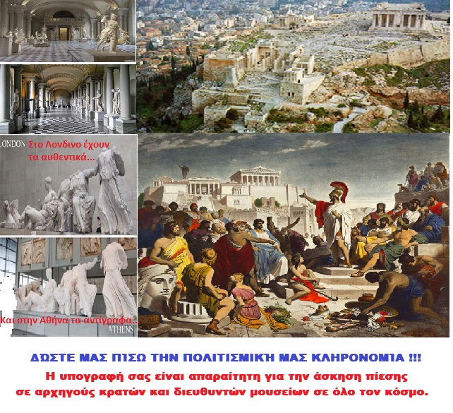 | ΔΩΣΤΕ ΜΑΣ ΠΙΣΩ ΤΗΝ ΠΟΛΙΤΙΣΤΙΚΗ ΜΑΣ ΚΛΗΡΟΝΟΜΙΑ | ||